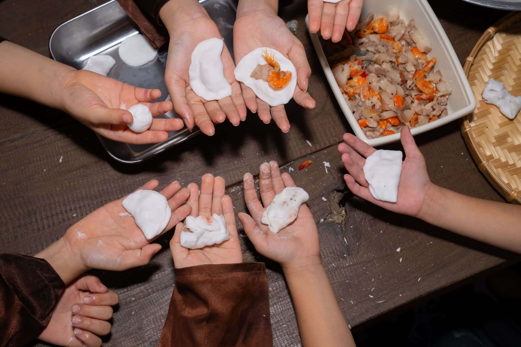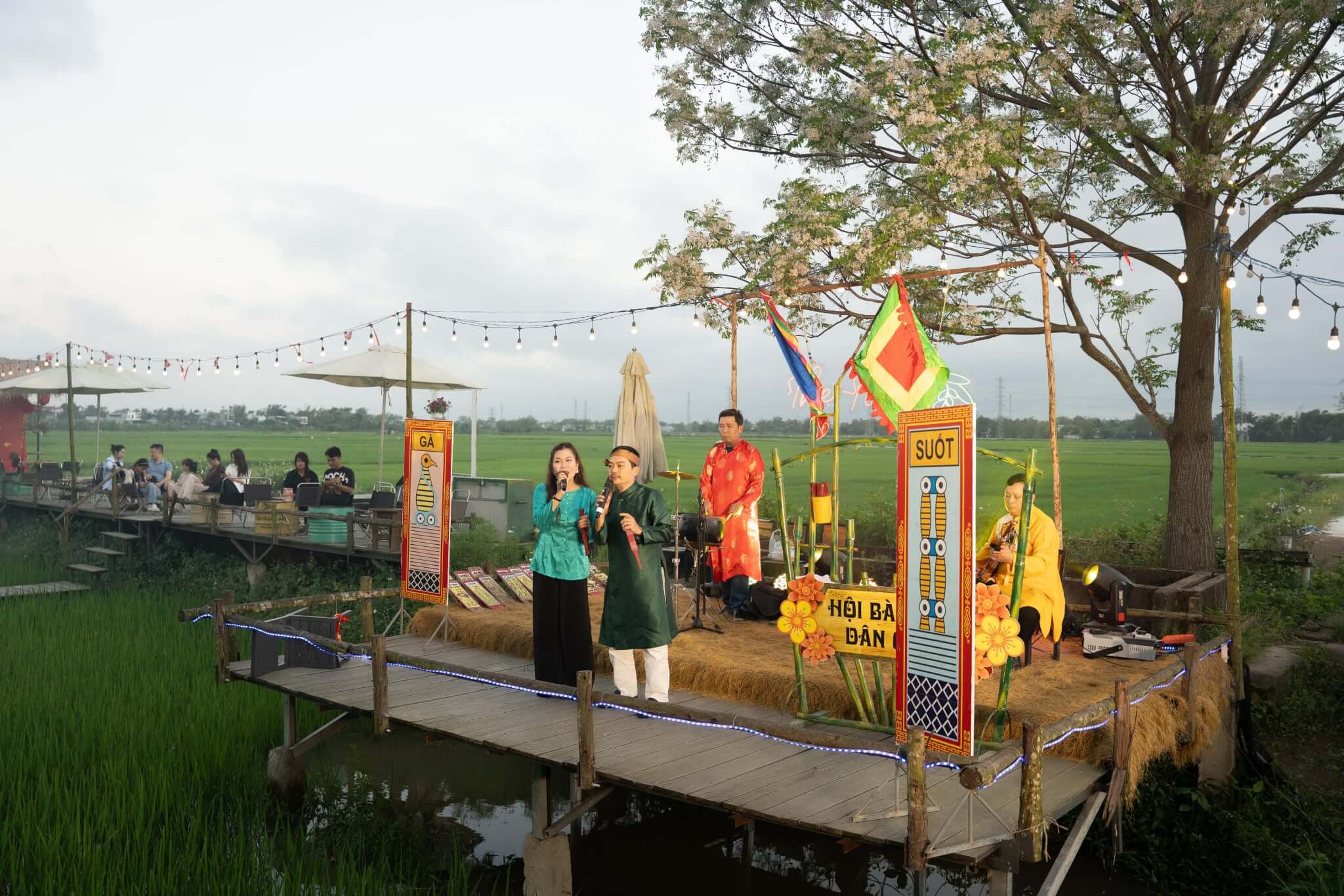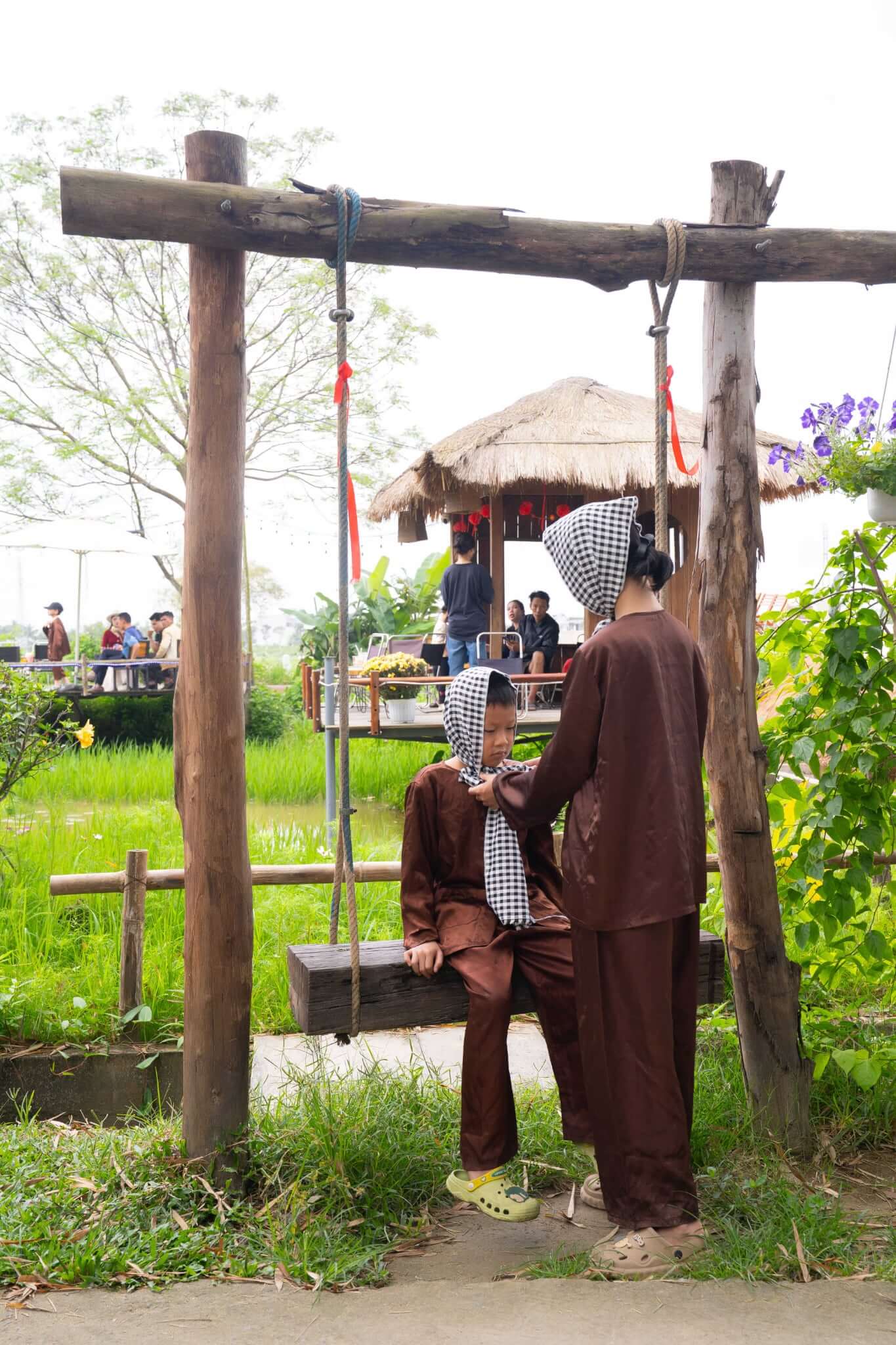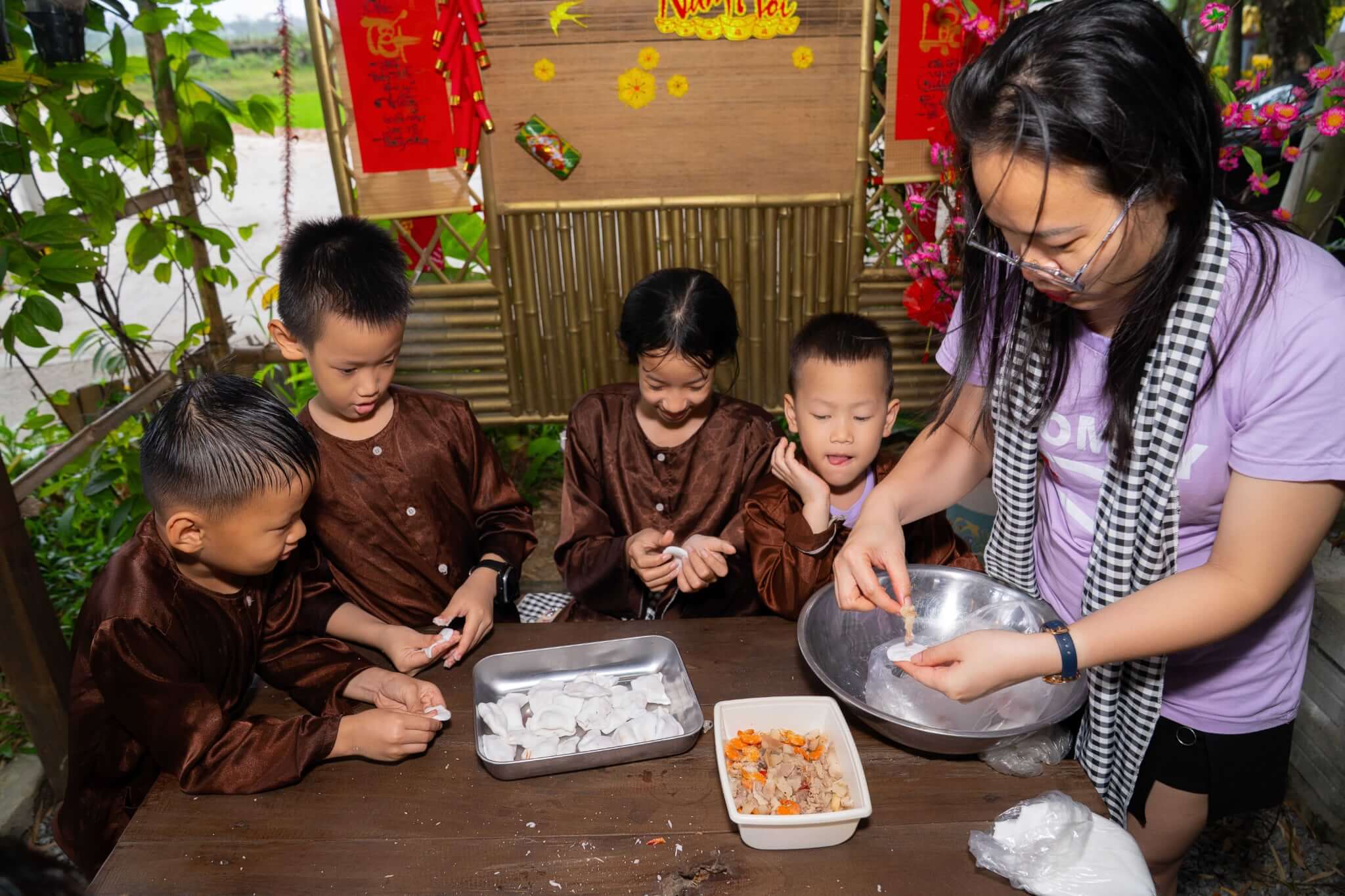 Một ngày làm nông dân: cấy lúa, bắt cá, tát mương, chăn vịt. Học làm bánh dân gian: bánh lọc, bánh nậm, bánh ít lá gai, nướng bánh tráng thủ công. Tham gia trò chơi dân gian: bịt mắt bắt vịt, kéo co, nhảy bao bố, thi gánh nước.